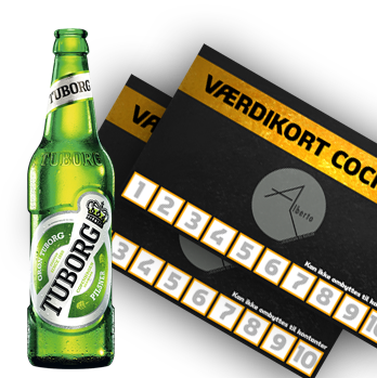 Pakken består af 20 valgfrie cockatils til max værdi 90 kr pr stk. Værdikortene (2x10 cocktails) vil ligge på jeres bord sammen med 5 stk tuborg profil når i ankommer.
